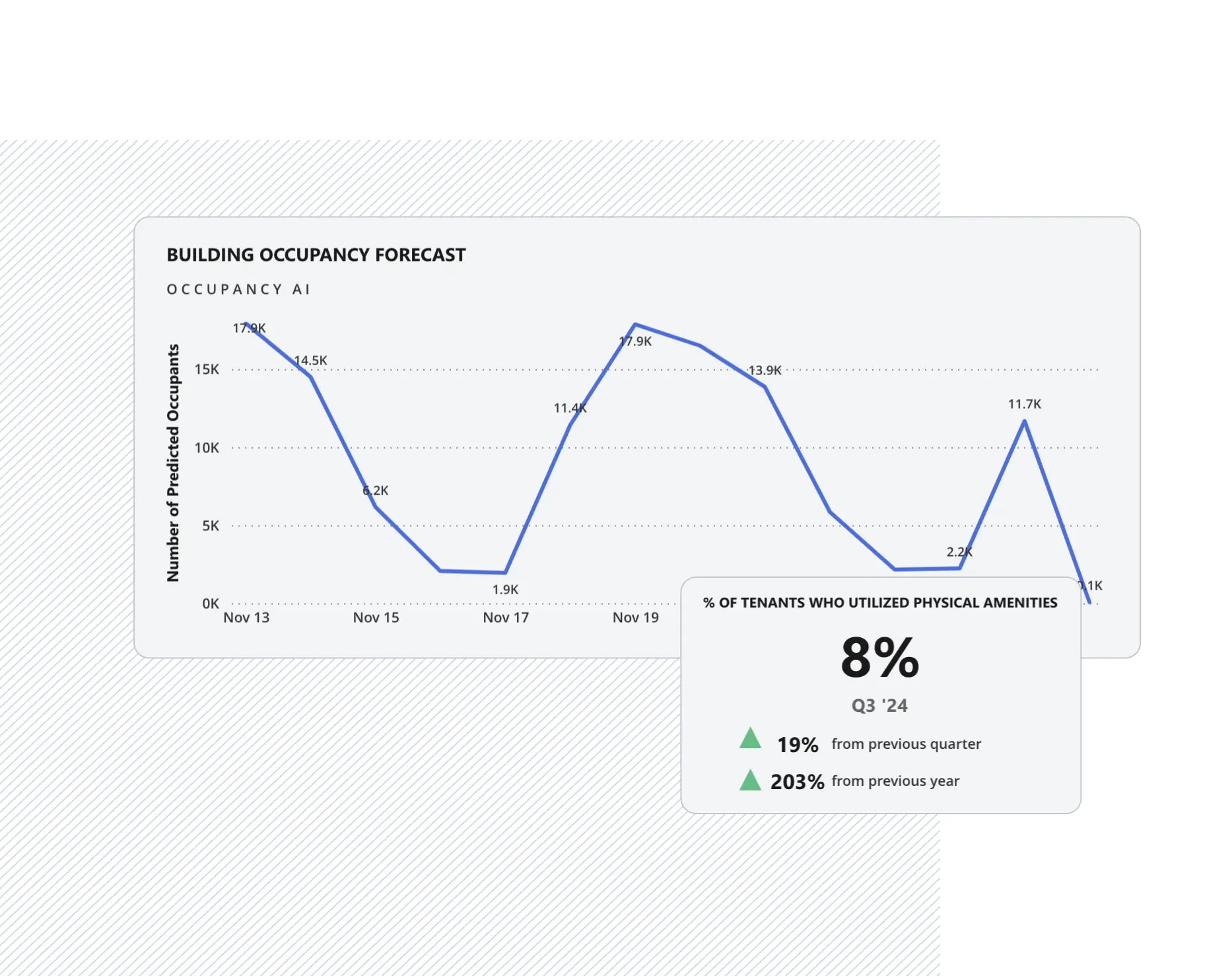 Transform real estate insights with our AI-powered building solutions. Our platform leverages cutting-edge smart building technology to optimize space performance, reveal true occupancy costs, and streamline resource management.